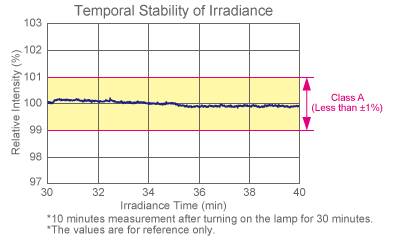 | 輻照時(shí)間穩(wěn)定性 **使用,閃爍較少和光輸出穩(wěn)定。 *如果你長(zhǎng)時(shí)間使用HAL-C100,我們建議使用恒壓電源,這樣HAL-C100就不會(huì)受到負(fù)載變化的影響 ![]() | |||||||||||||||||||||||||||||||||||||