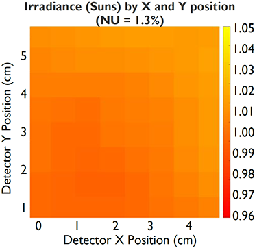 SciSun 太陽(yáng)模擬器輸出非常均勻的光斑,其不均勻性≤2%,如圖所示