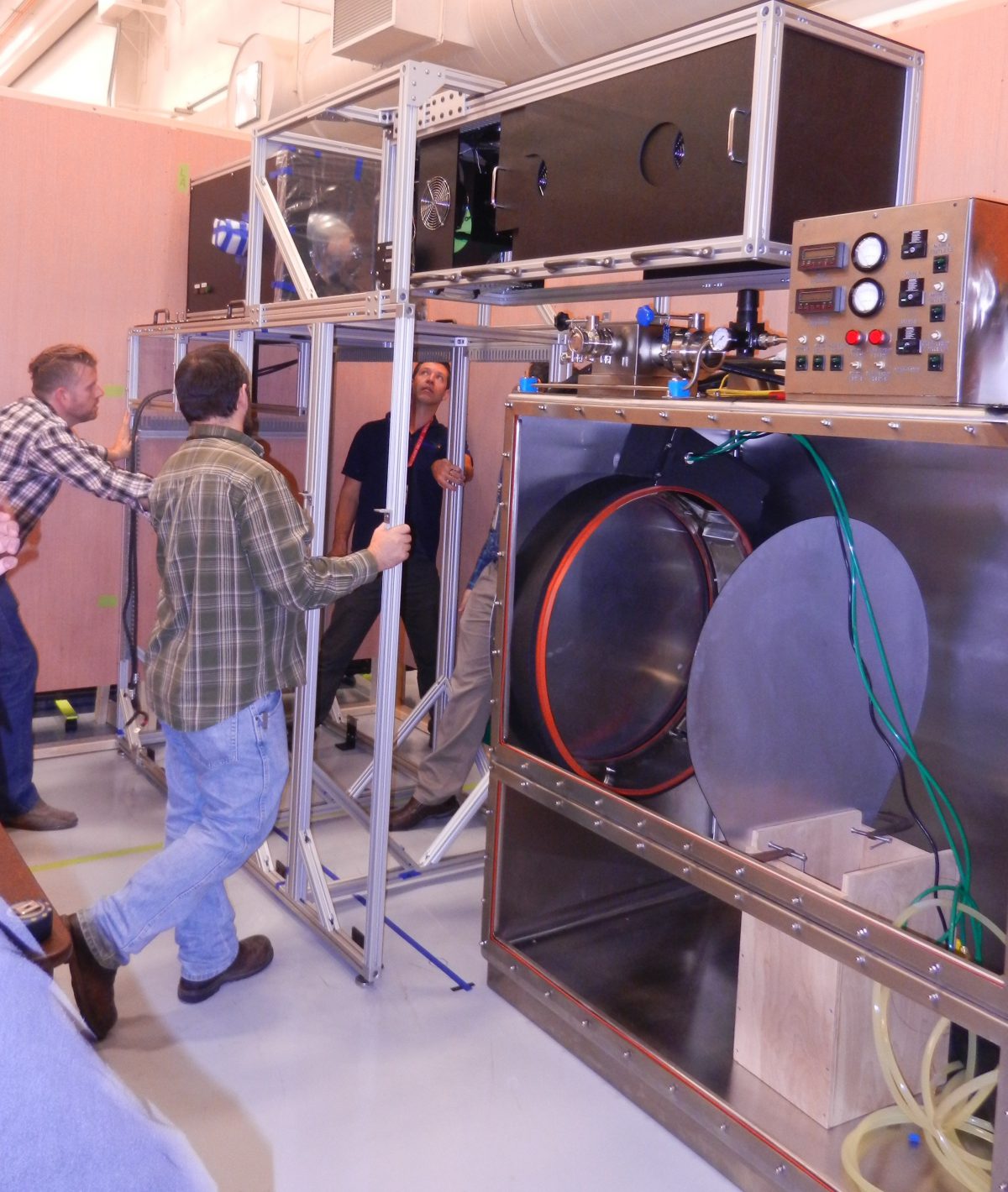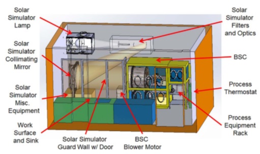 科學家聯(lián)系了我們,需要開發(fā)定制的太陽能模擬器,以實現(xiàn)政府的高度優(yōu)先研究計劃。他們對研究高層大氣中的空氣污染效應(yīng)和光化學具有獨特而特殊的光譜要求??蛻舻臉悠肥沂且粋€裝有懸浮氣溶膠的旋轉(zhuǎn)圓柱鼓,需要均勻和準直的照明。但是,狹窄的實驗室空間以及連接到樣品桶的其他設(shè)備的存在對我們提出的解決方案施加了多個限制。